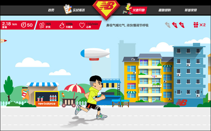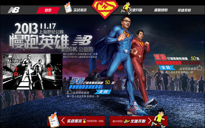 作為其互動營銷代理商的Leadinfo(立特整合營銷傳播機構)便以英雄扮演的趣味方式為New Balance創意了一款在線趣跑游戲http://newbalance.renren.com,用戶只需用人人網賬號登錄,即可選擇卡通角色邊跑邊體驗身為英雄的快感。