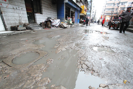 紅旗二路通向涂山路的支路(曾稱南崗二路)路面損毀嚴重,下雨天大大小小的水坑里積滿污水。
